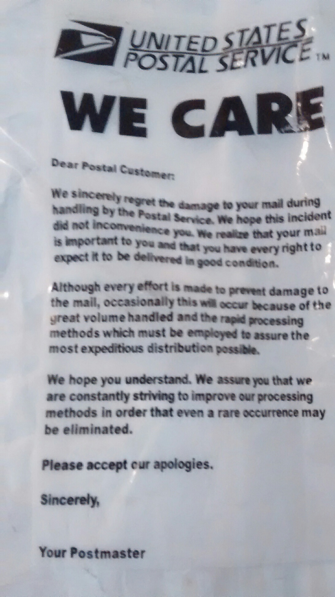 As before, I signed, packaged (in a padded envelope), and mailed. At the counter, I thought about adding insurance to the package, but then told myself Nah, what are the chances of lightning striking twice in the same place?